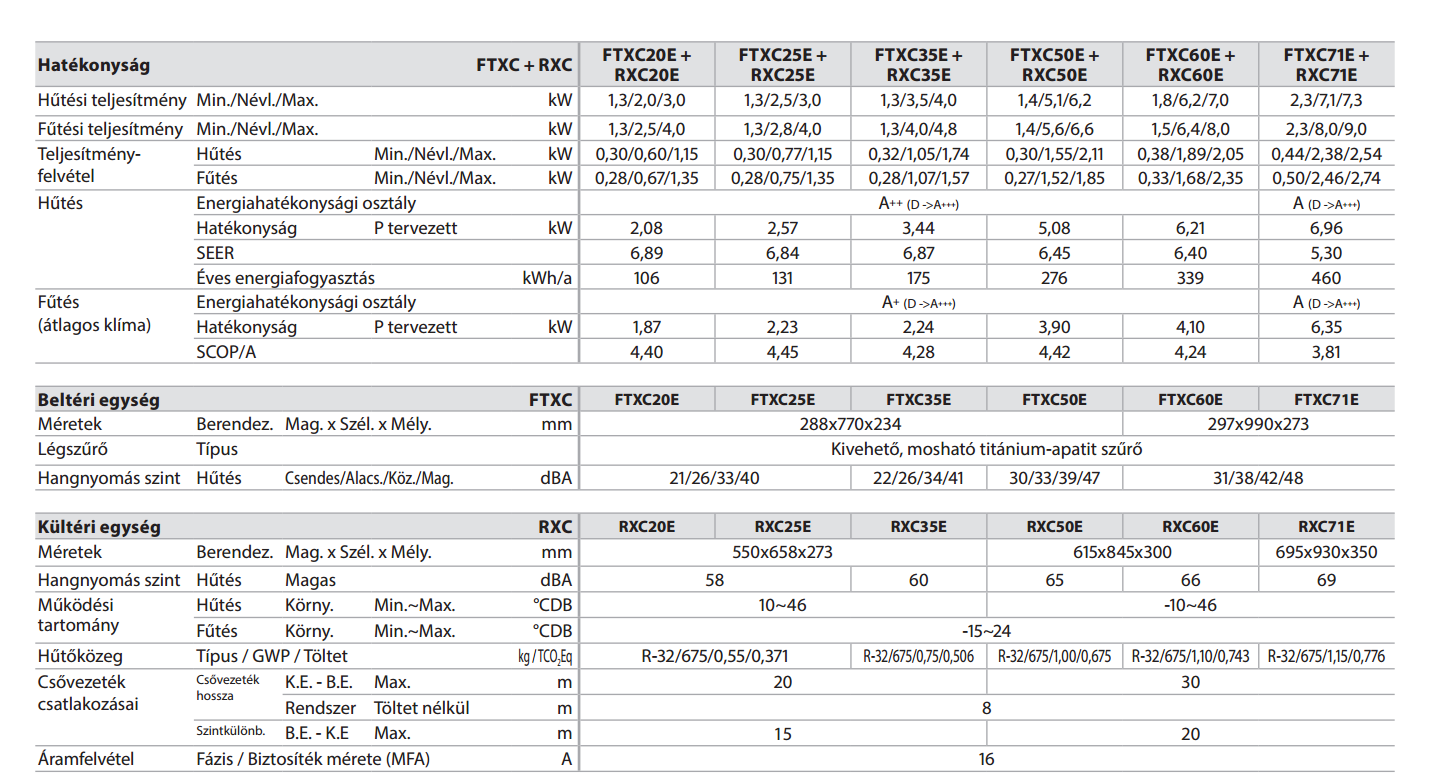 A Daikin FTXC25E / RXC25E Inverteres Split klíma fontos tulajdonságai: