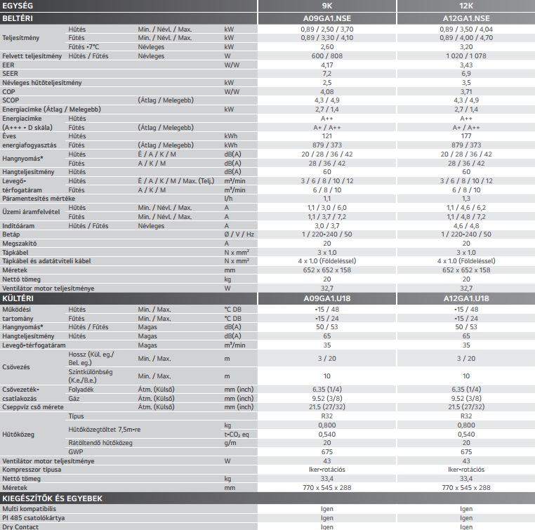- Hűtő teljesítmény : 3,5 (1,3-4,0) kW