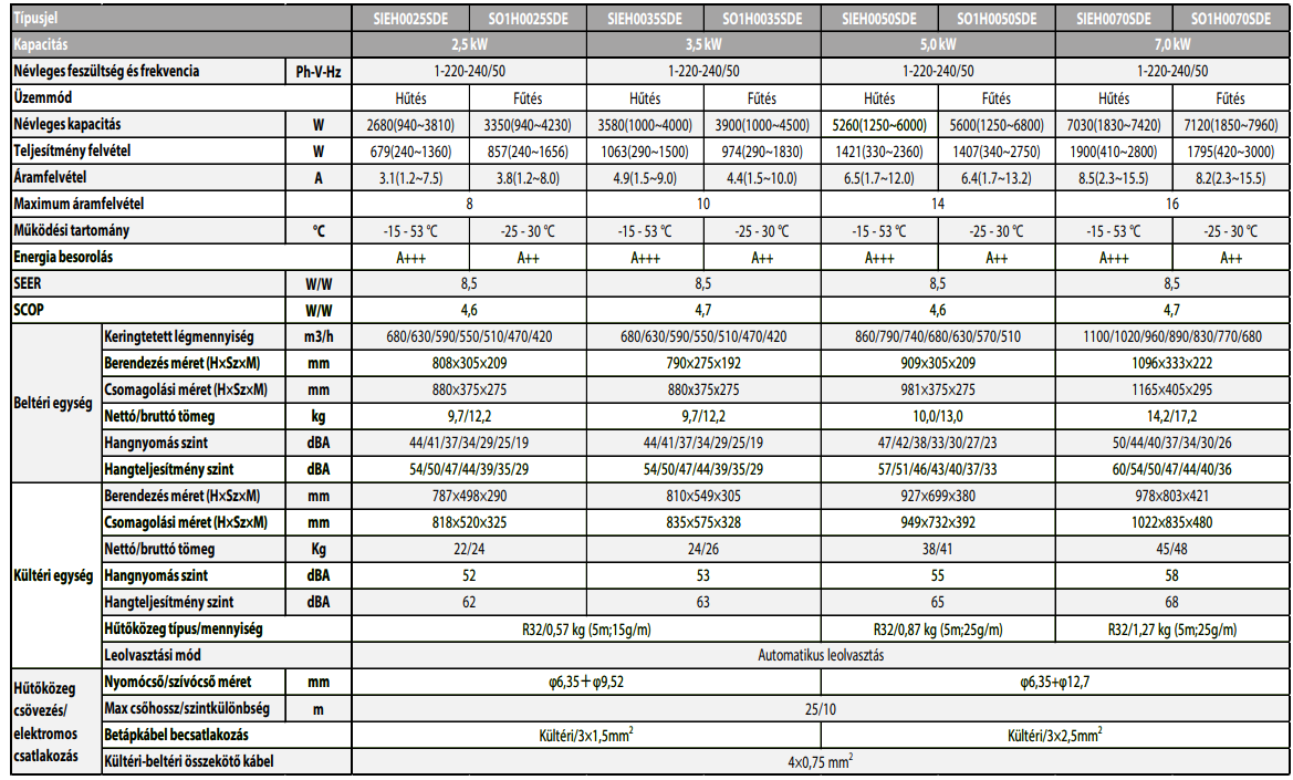 A Polar SIEH0025SDE/SO1H0025SDE Everest Inverteres Split klíma fontos tulajdonságai: